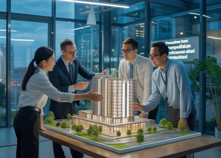 Proses konsultasi meliputi perencanaan, desain, supervisi, dan inspeksi untuk memastikan kualitas proyek yang optimal.